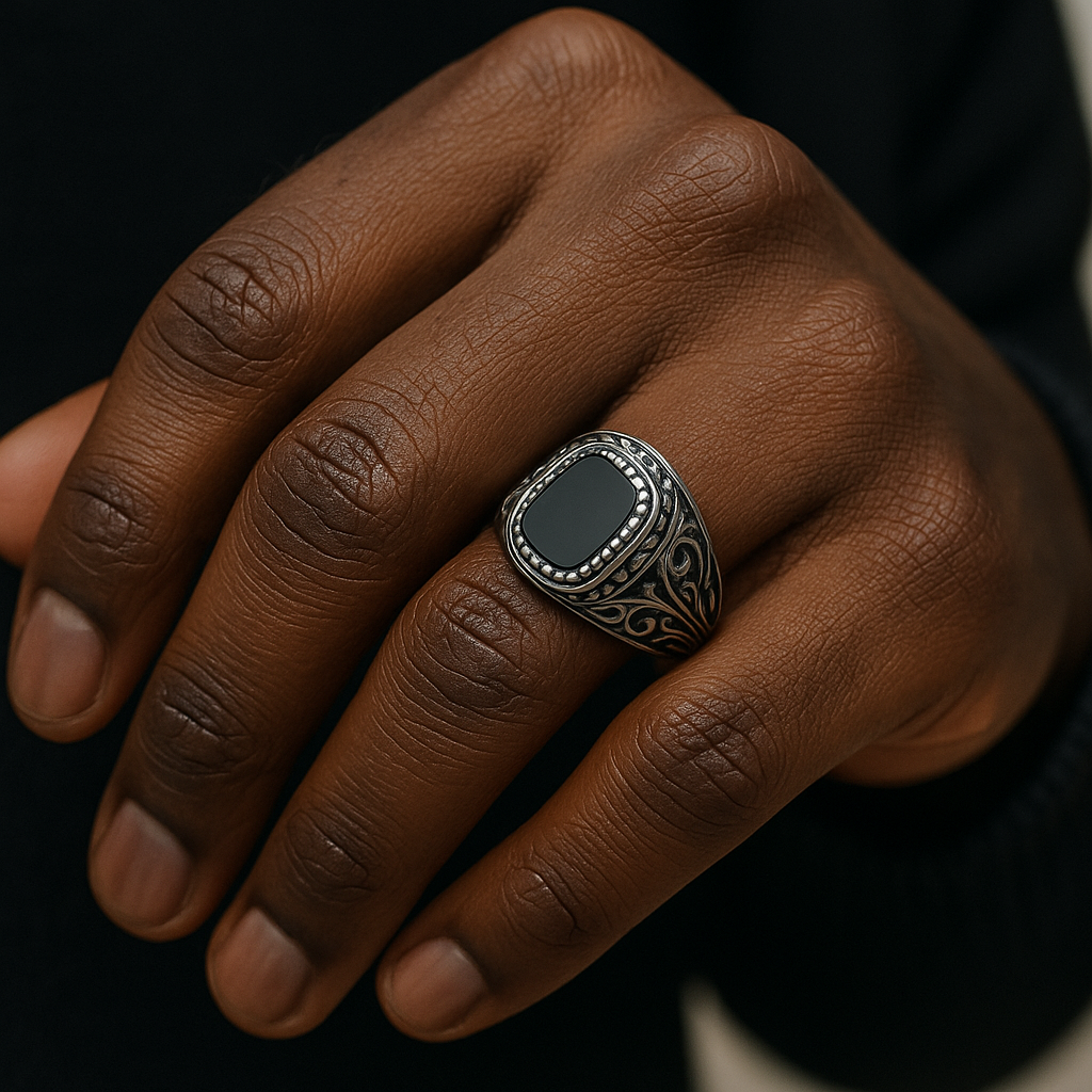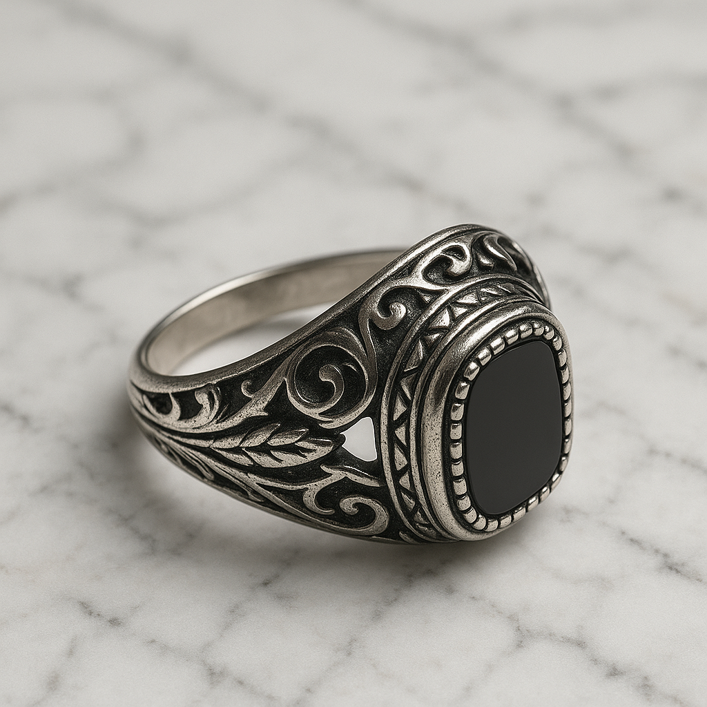 Chevalière Homme Acier Inoxydable Pierre Noire – Style Vintage & Gothique Luxe